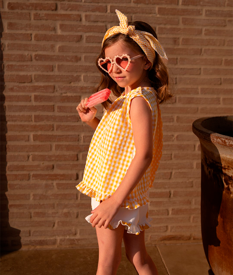 Blusa vichy niña color amarillo.