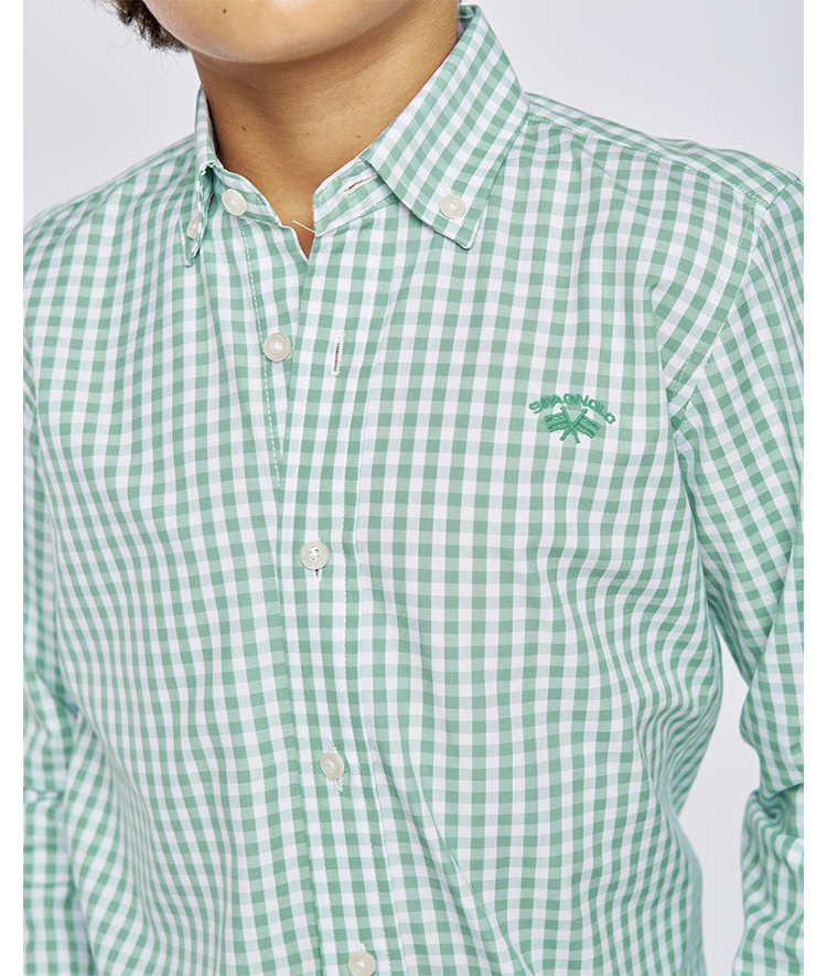 Camisa niño de popelín cuadros con manga larga y botones.