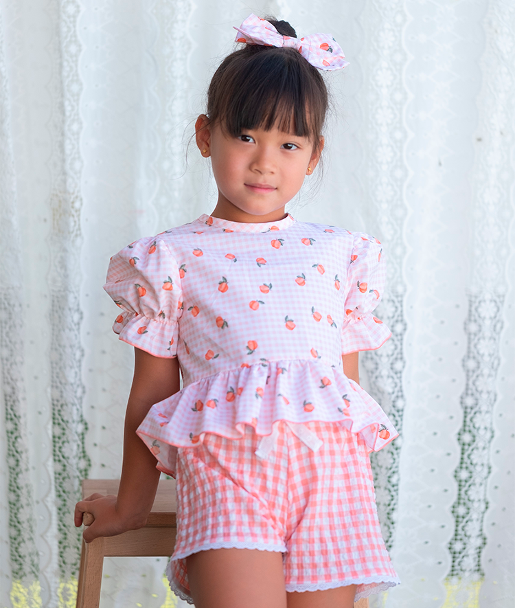 Camisa niña vichy melocotones.