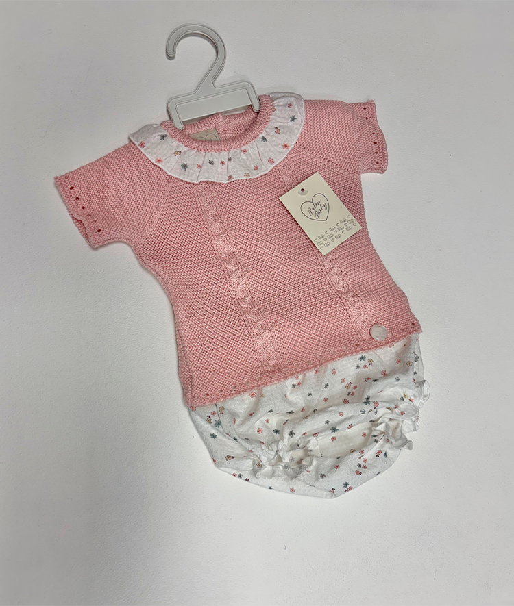 Conjunto bebe niña de jersey de punto y braga tela florecitas.