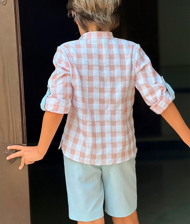 Conjunto de niño de camisa vichy y pantalón corto.