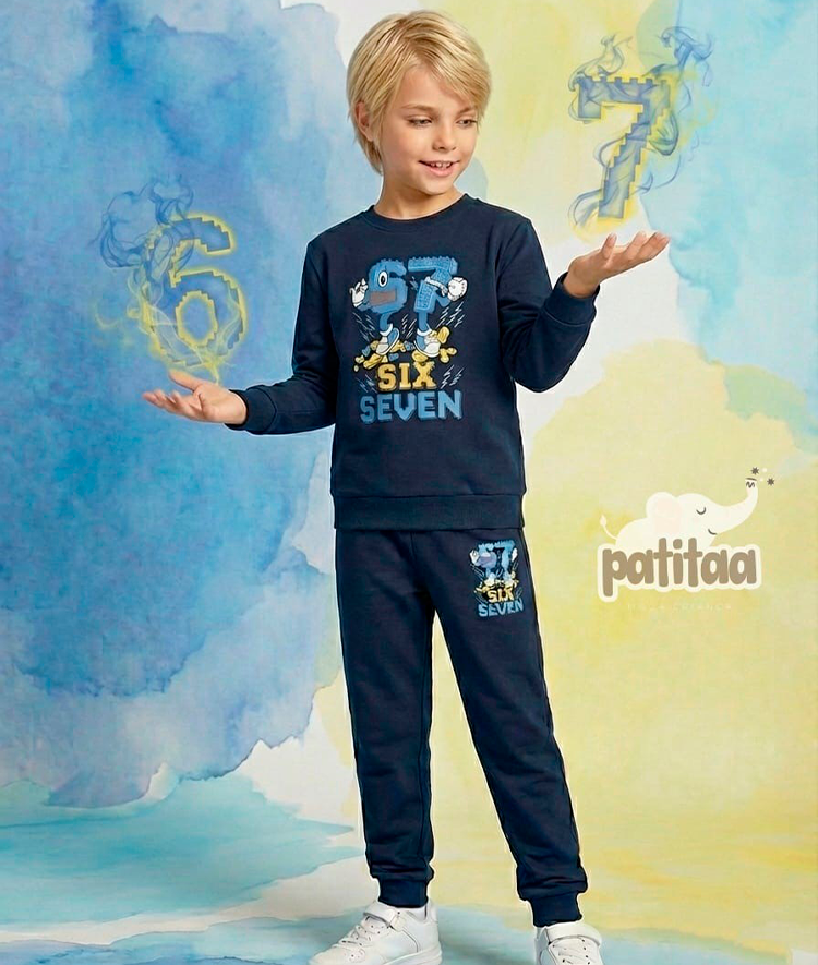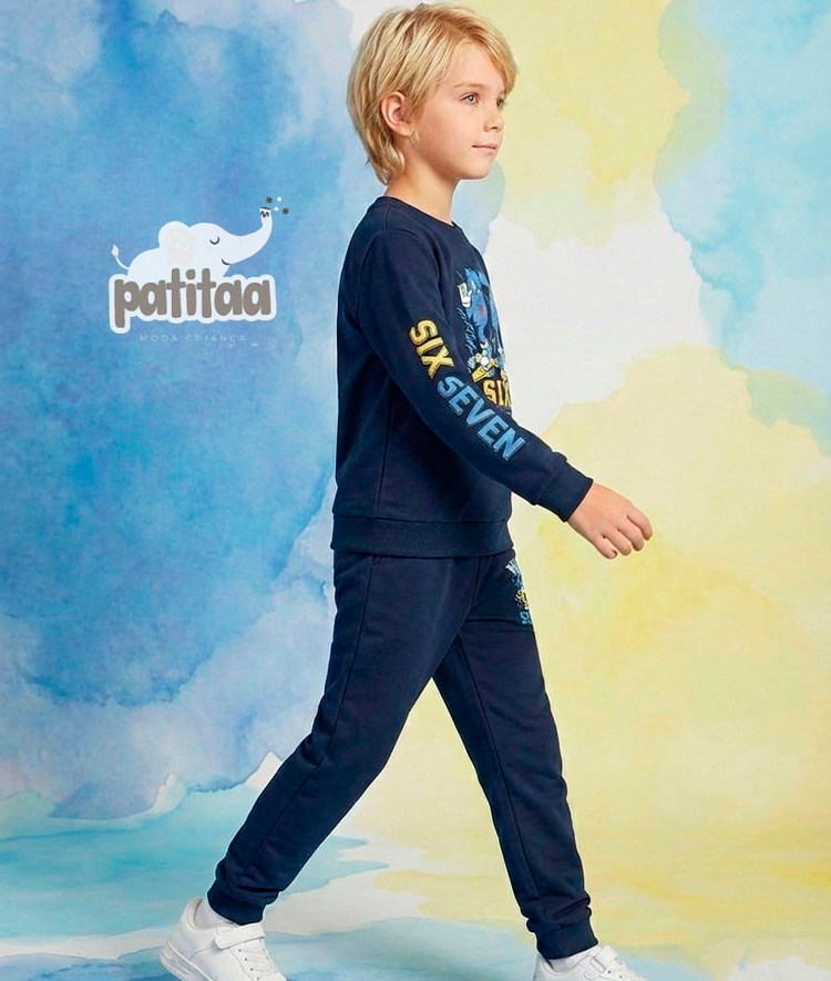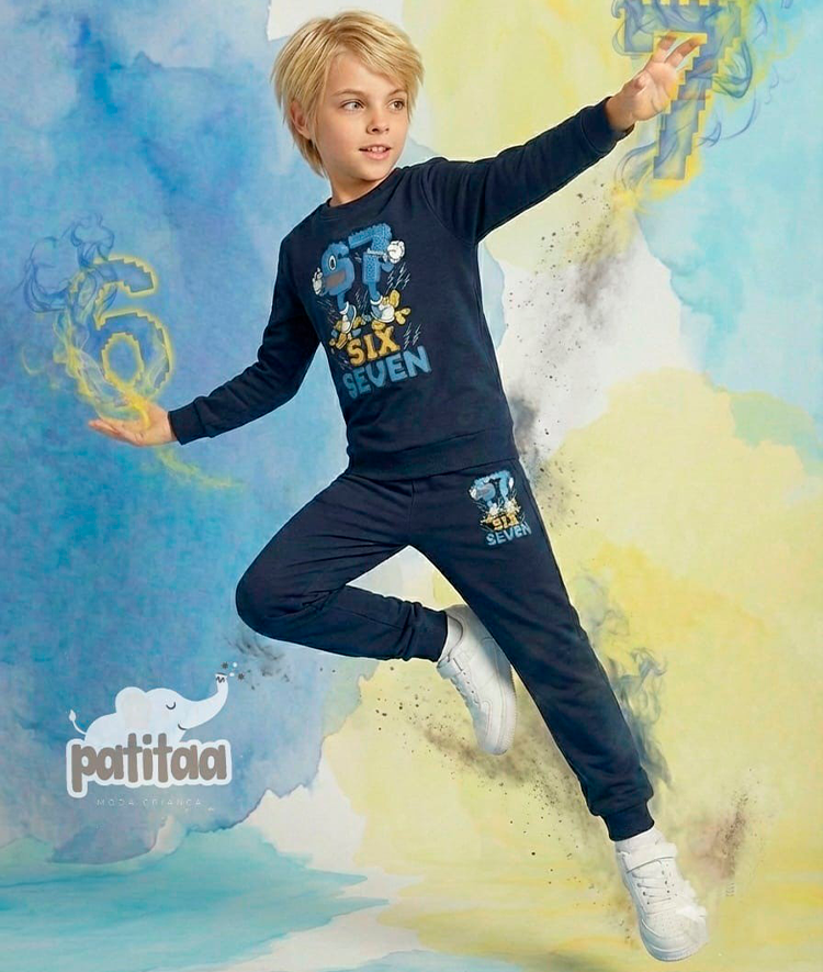 Conjunto sport niño de sudadera y pantalón en algodón con licra, bolsillos, cordón ajustable y puños
