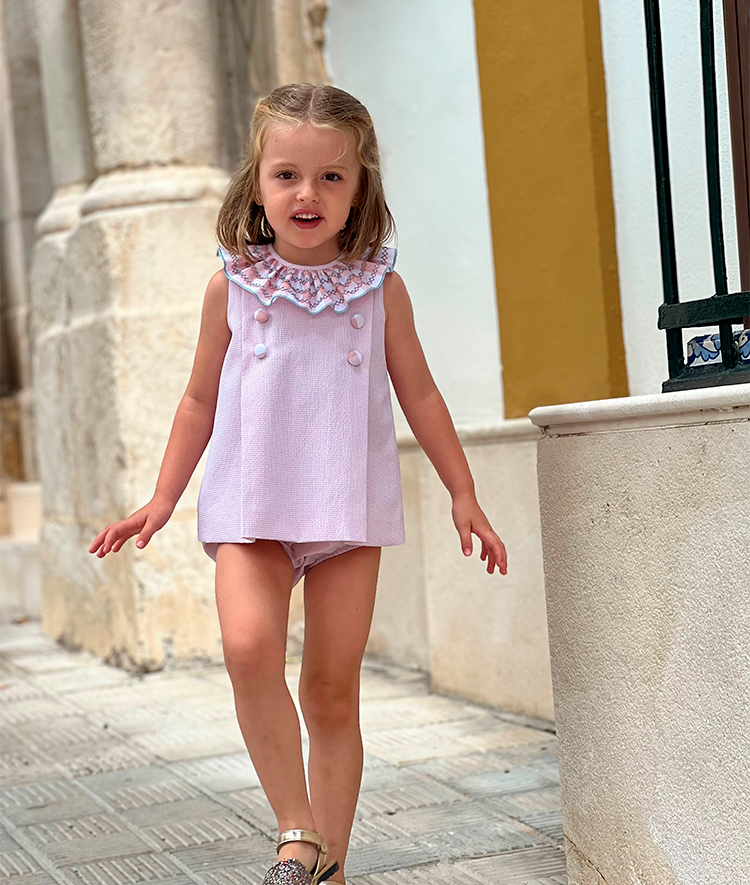 Falda pantalón denim oscuro con lazo liberty lila