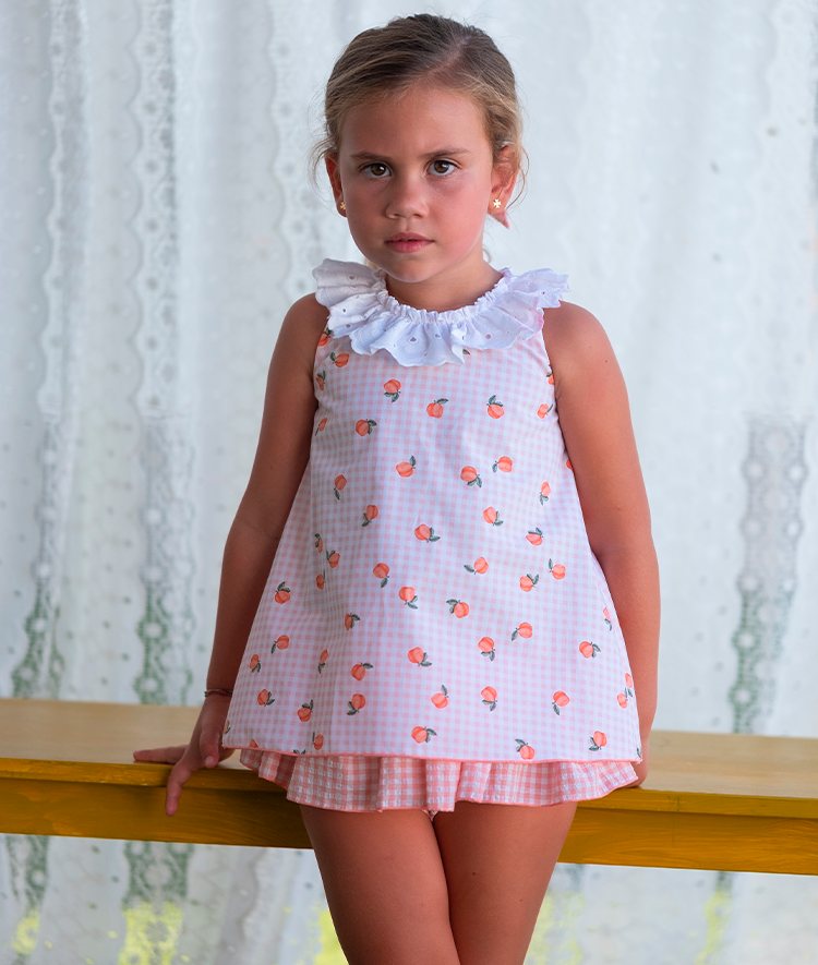 Jesusito fresquito vichy melocotones con braguita a juego.