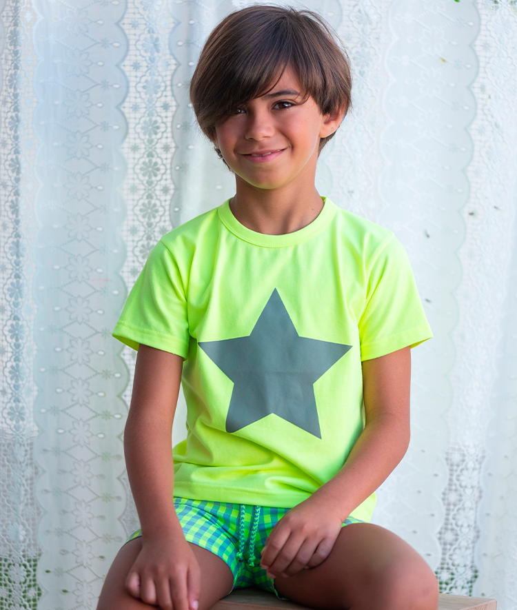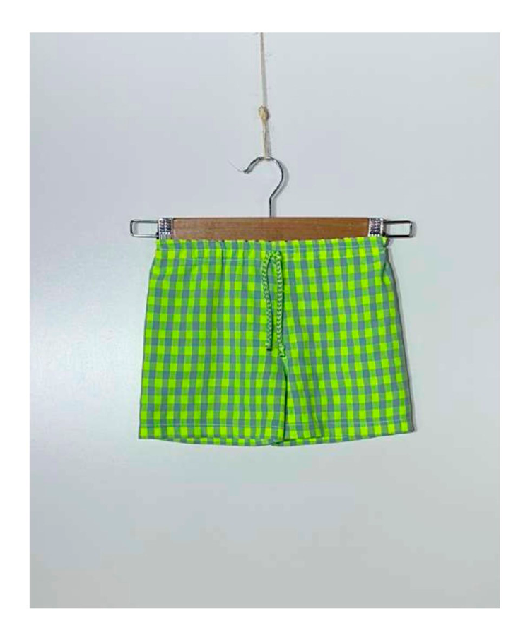 Bermuda niño vichy amarillo flúor combinada con gris.