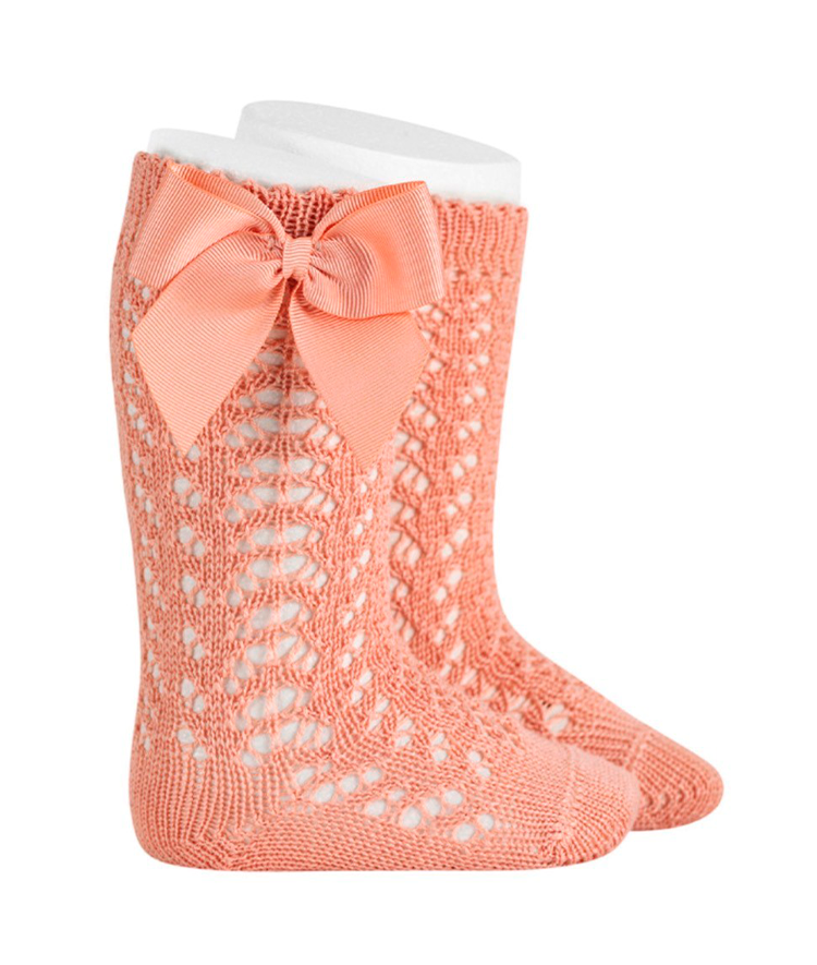 Calcetines altos perlé calados con lazo grosgrén color salmonete (638)