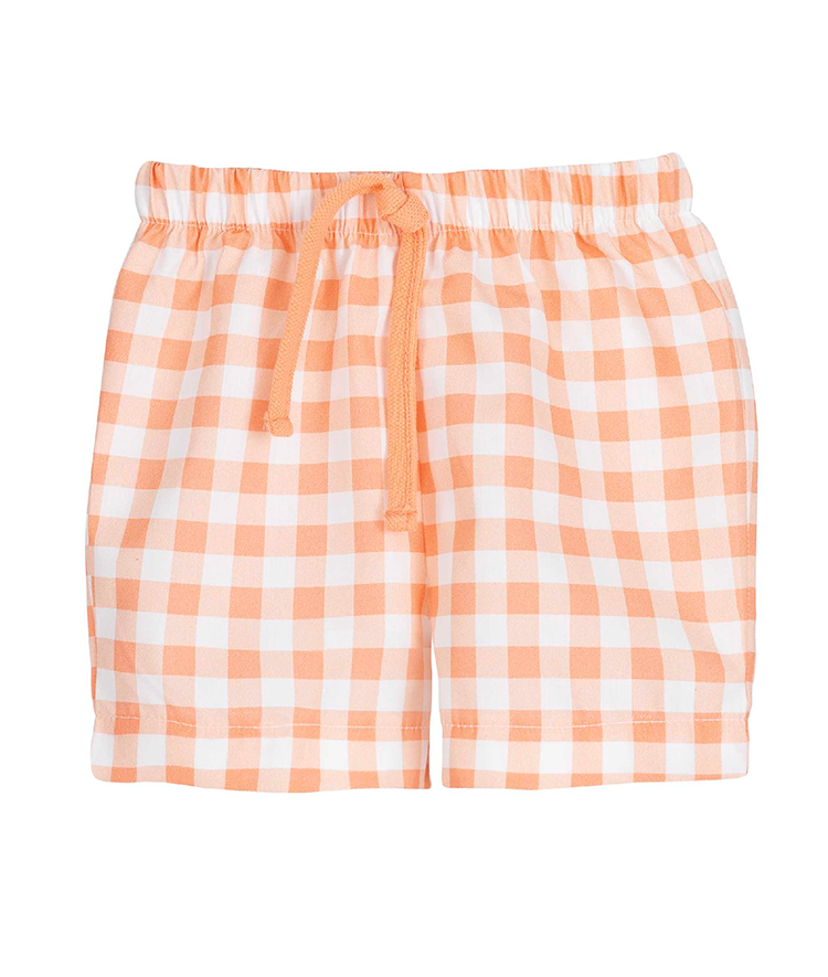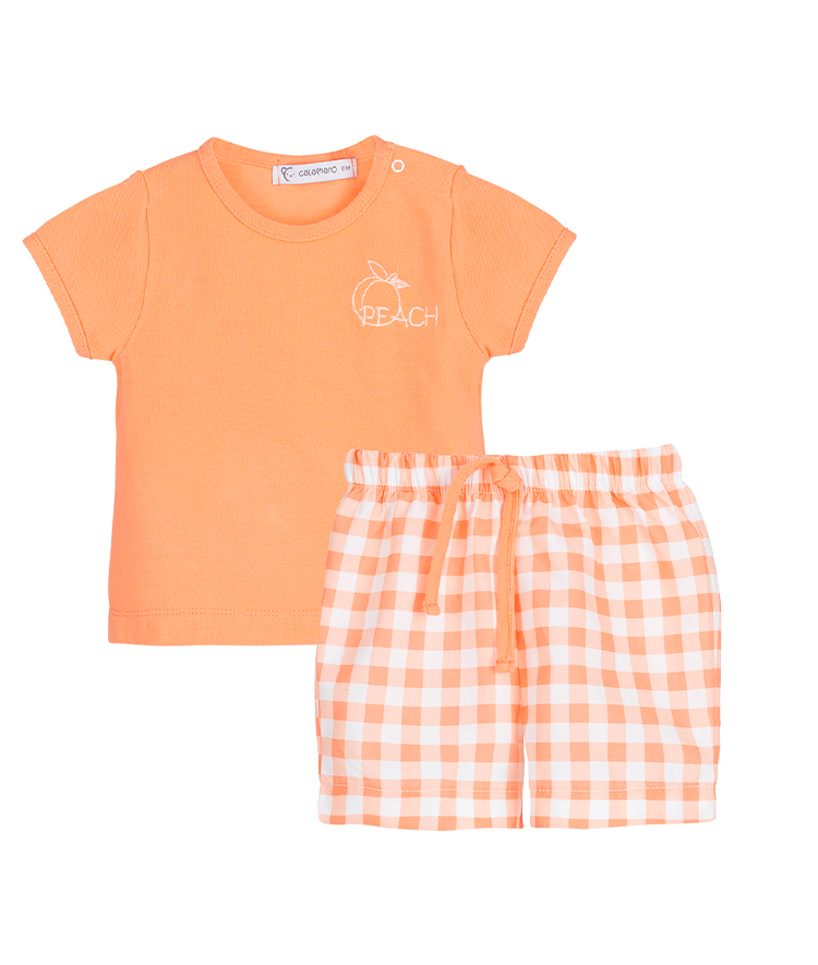 Conjunto niño de camiseta de manga corta y pantalón en color melocotón, familia Cuadros.