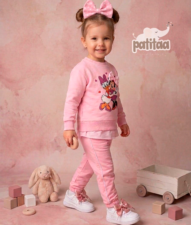 Conjunto sport Minnie de sudadera en algodón con licra y efecto camisa incorporada y pantalón con bolsillos, puño y vivo lateral.
