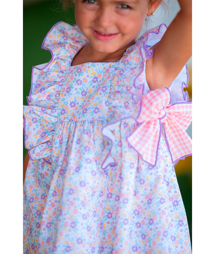 Jesusito liberty lila con braguita a juego con lazos en vichy.