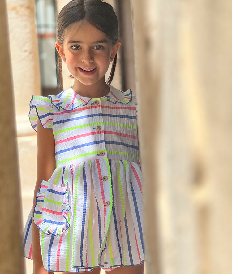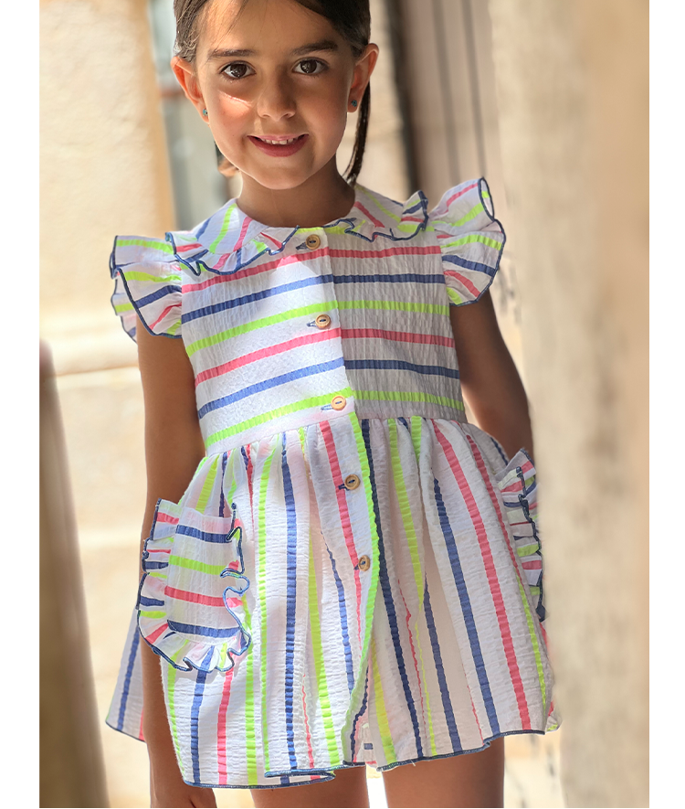 Jesusito rayas flúor con braguita a juego.