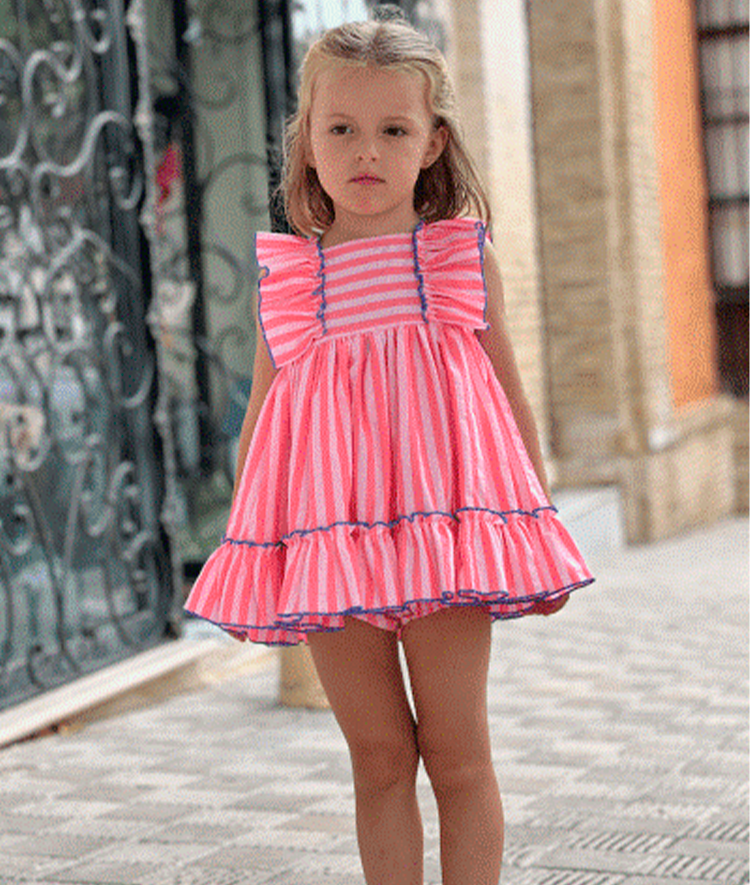 Jesusito rayas rosas con braguita a juego.