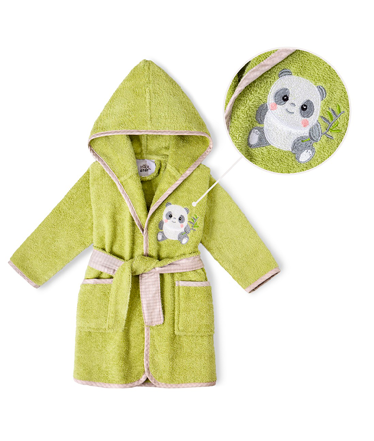 Albornoz estampado de rizo extra suave y con gran capacidad de absorción. 100% algodón.