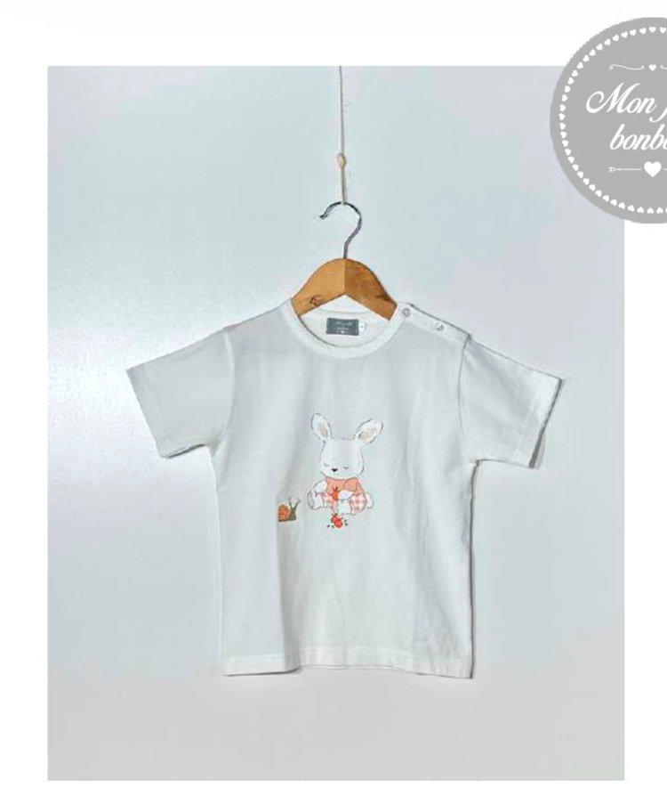 Camiseta niño manga corta, familia conejo melocotones.