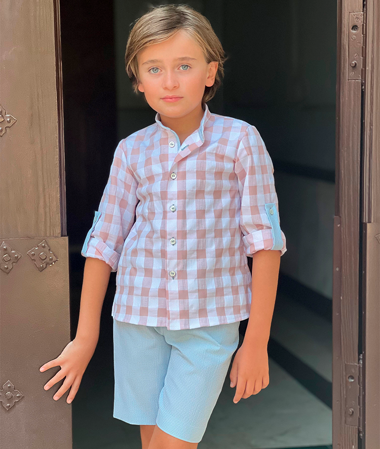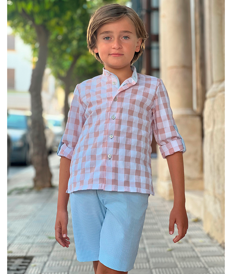 Conjunto de niño de camisa vichy y pantalón corto.
