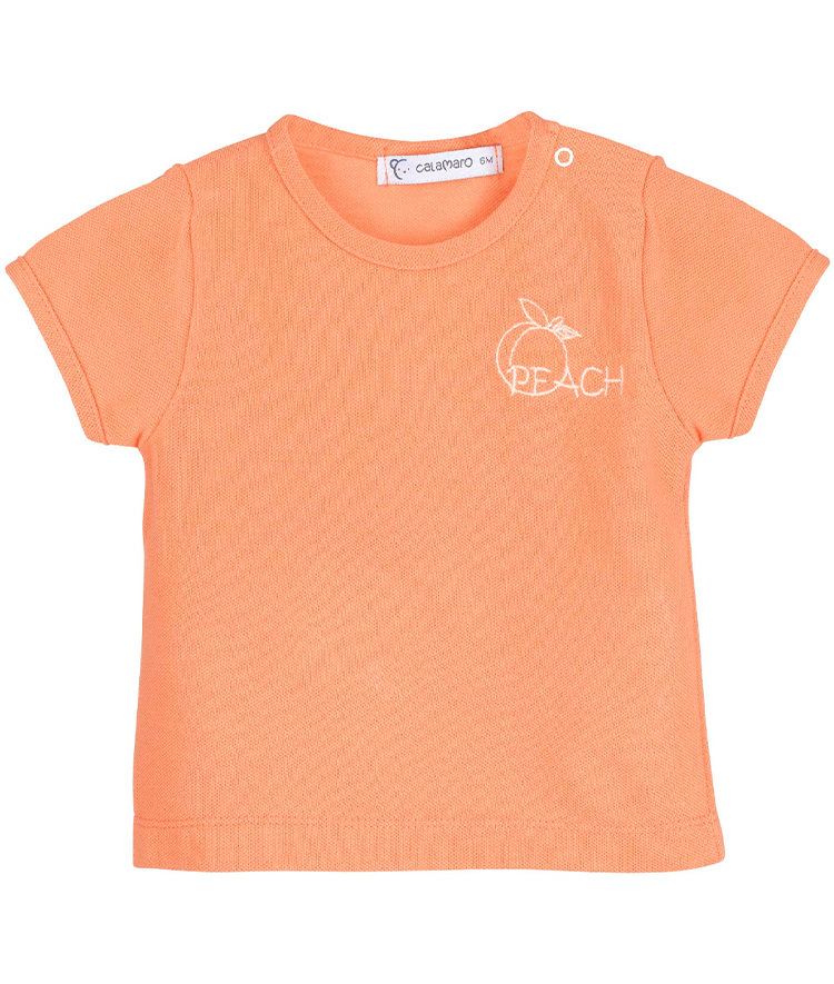 Conjunto niño de camiseta de manga corta y pantalón en color melocotón, familia Cuadros.
