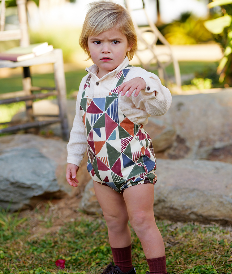 Conjunto de niño de polo de manga corta y pantalón corto vichy color nectarina.