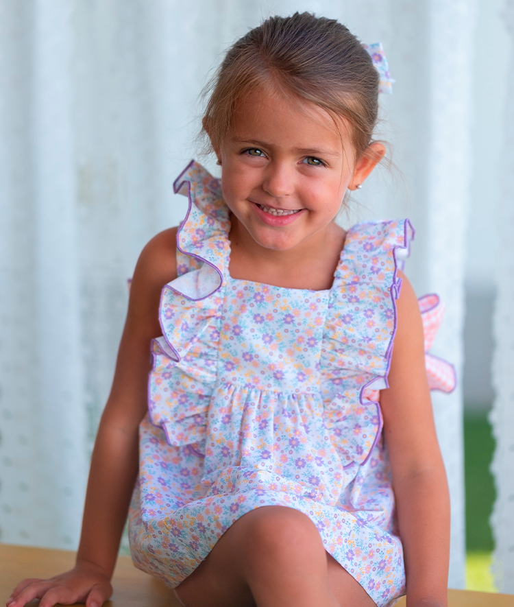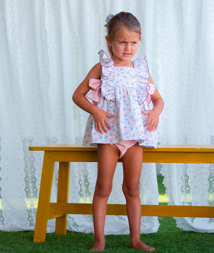 Jesusito liberty lila con braguita a juego con lazos en vichy.