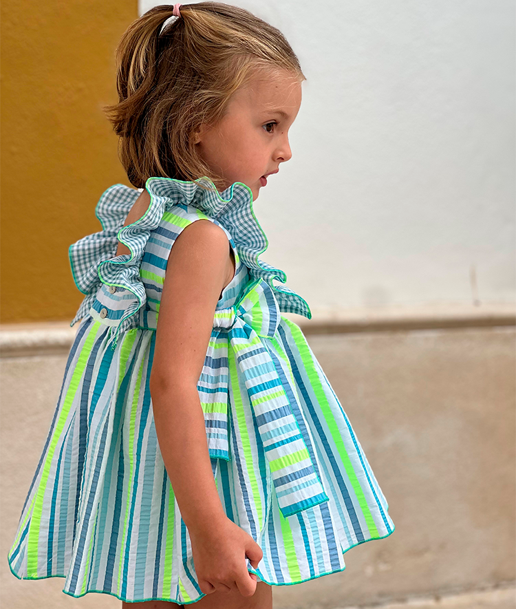 Jesusito rayas flúor con braguita a juego.
