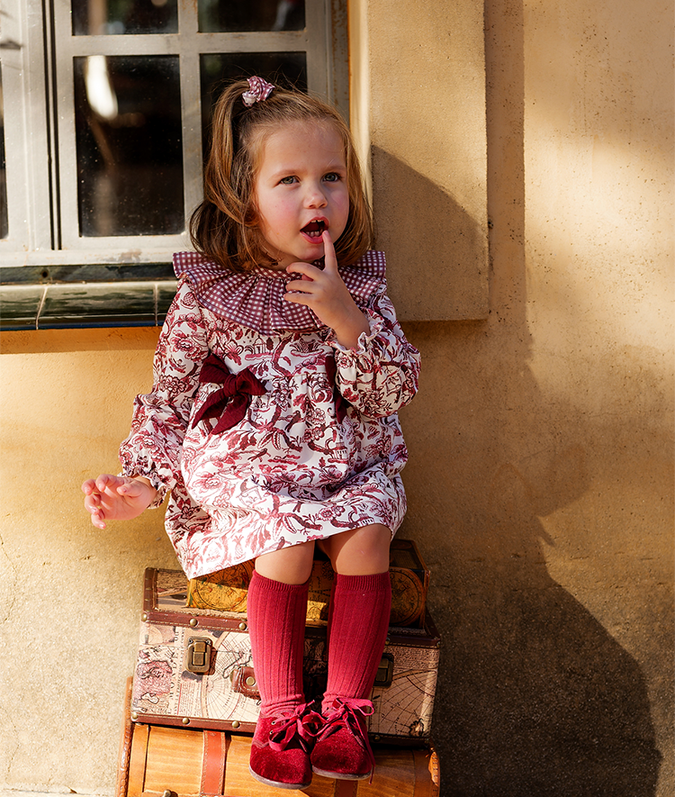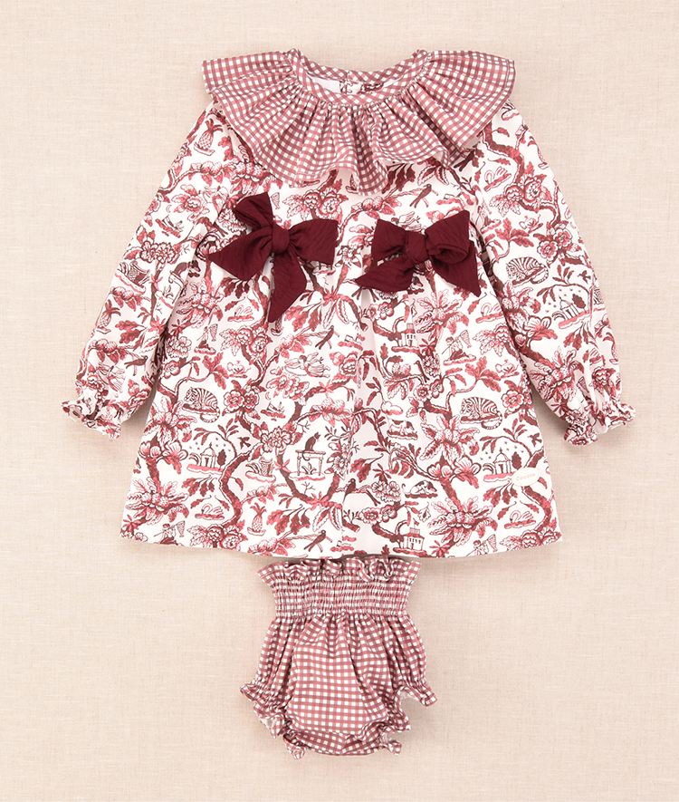 Vestido bebe niña con braguita a juego, familia Toile de Jouy