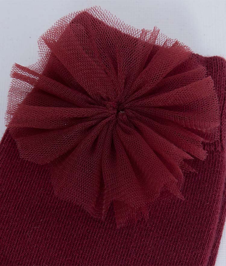 Calcetines altos lisos con rosetón de tul confeccionados en algodón. Diferentes colores