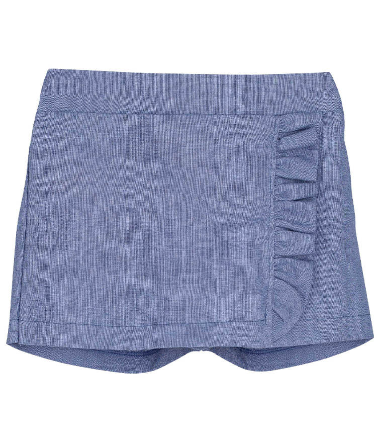 Conjunto niña de blusa estampada floral y falda pantalón color azul, familia Agra.
