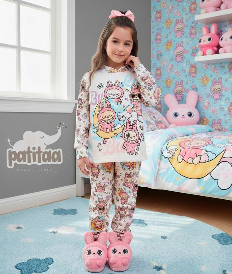 Pijama niña Labubu de felpa polar extrasuave.