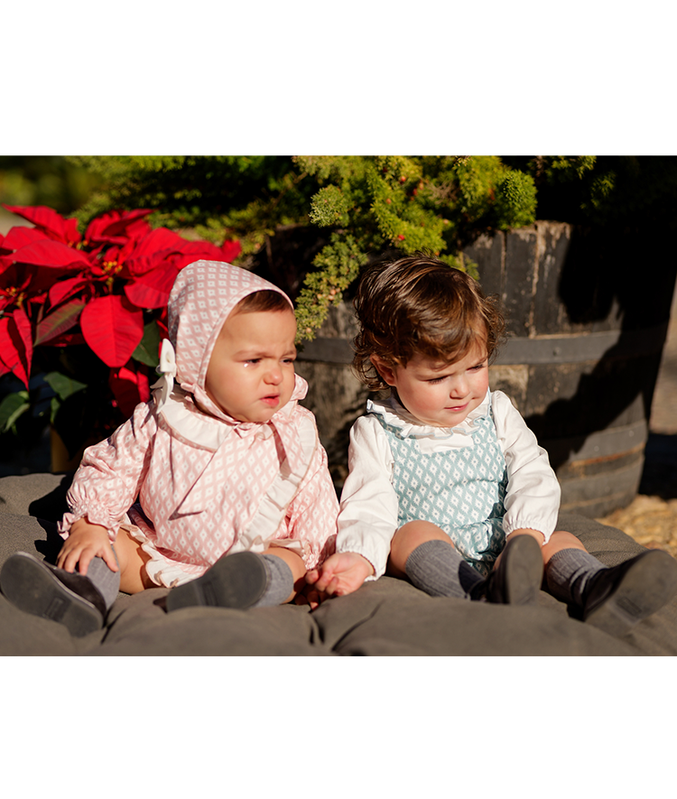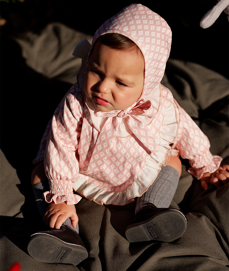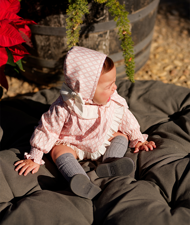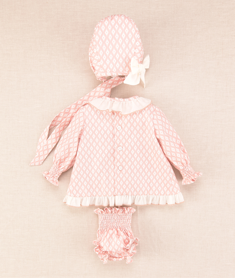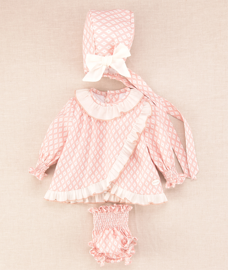 Vestido rombos bebe niña con capota y braguita a juego.